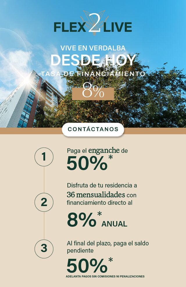 Verdalba es un proyecto de departamentos en San Jerónimo diseñados bajo el concepto de convivir con la naturaleza y hacerlo parte de lavida cotidiana, con un estilo arquitectónico único enfocado por completo a generar un entorno natural y moderno.